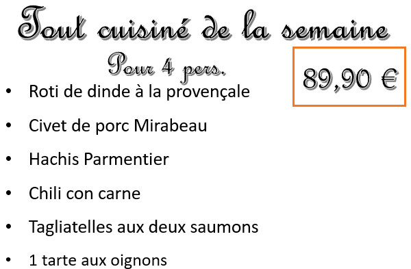 RETRAIT A PARTIR DU JEUDI OU LIVRAISON LE JEUDI OU SAMEDI MATIN