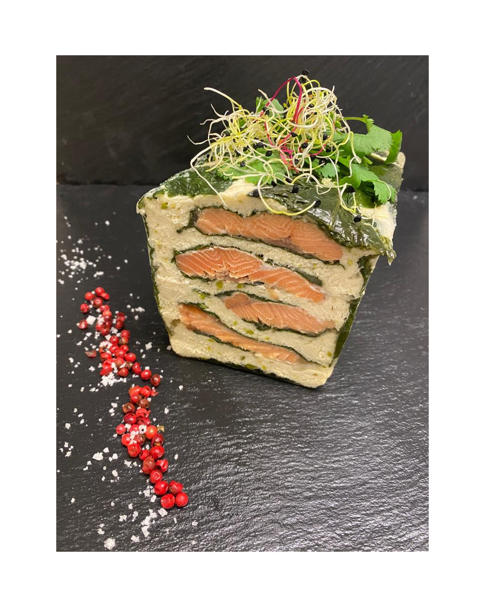 TERRINE DE FILET DE TRUITE AU VIN JAUNE SUR PLAT