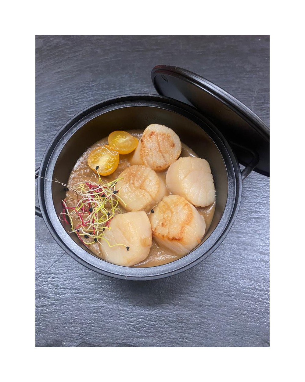 COCOTTE NOIX DE ST JACQUES RISOTTO CARNAROLI JUS CORSE AU ROMARIN