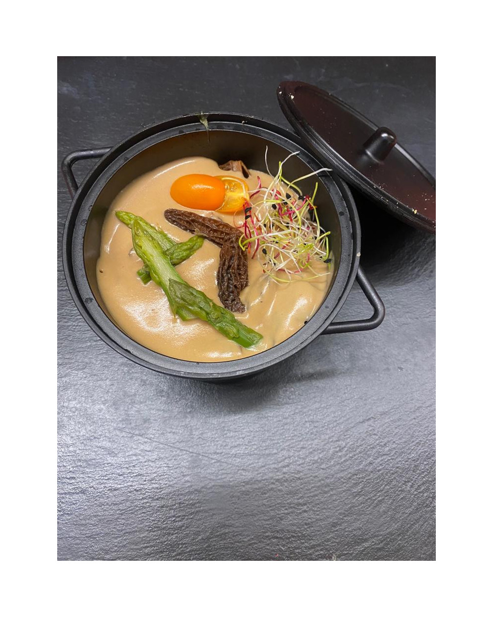 COCOTTE RISOTTO VENERE AUX MORILLES ET ASPERGES VERTES