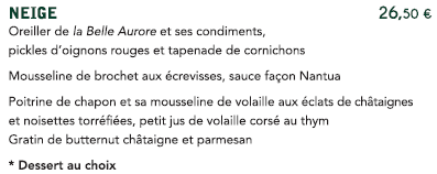 1 entrée au choix, 1 plat, 1 dessert au choix (idendique pour l'ensemble des convives)