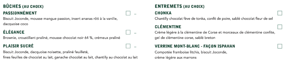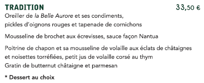 2 entrées, un plat, un dessert au choix (idendique pour l'ensemble des convives)