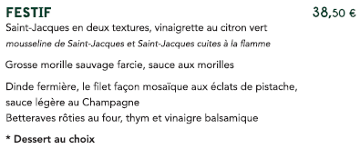 2 entrées, un plat, un dessert au choix (idendique pour l'ensemble des convives)