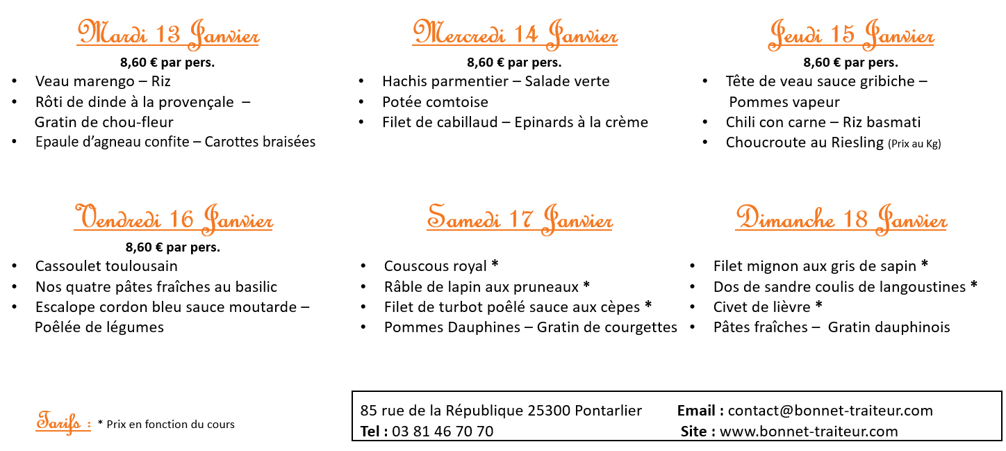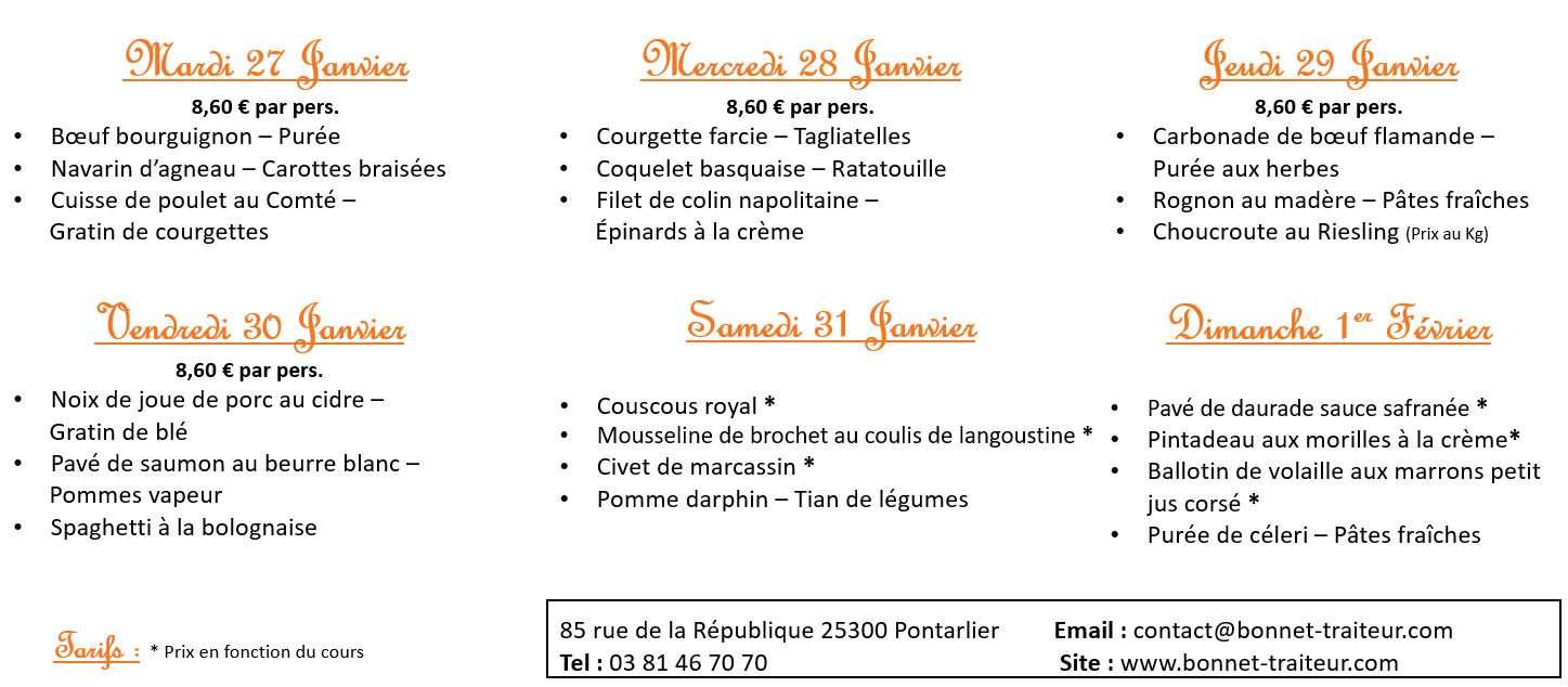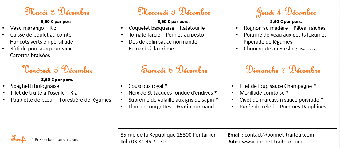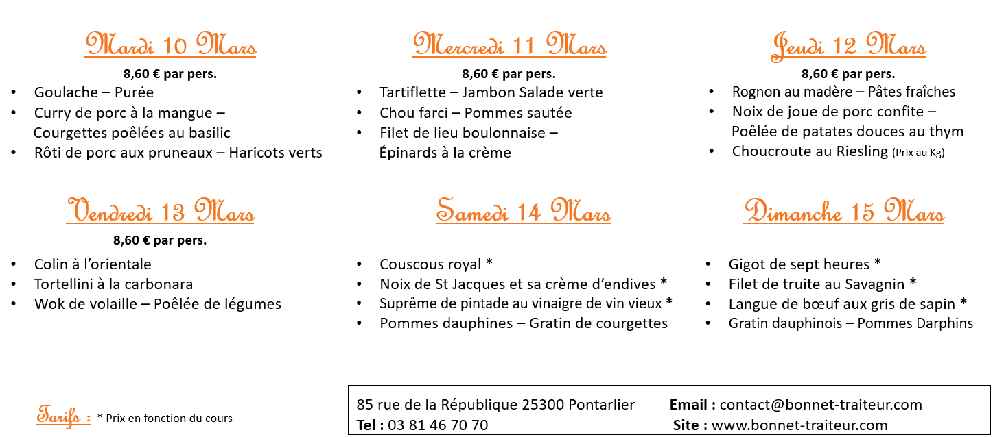 Ils sont au tarif de 8.60 € par portion du mardi au vendredi, à l'exception de la choucroute.